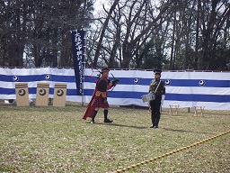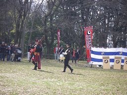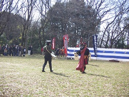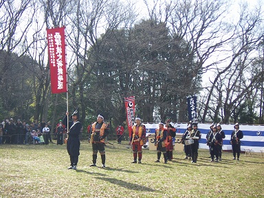西洋流火術鉄砲隊の演武団体の方達が入場されているところです。