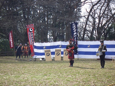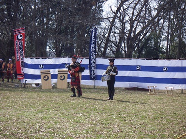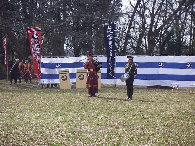 バグパイプ演奏の演武団体の方達が